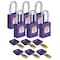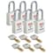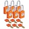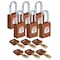 Lockout Padlock, Key Type Different, Body Material Nylon, Shackle Dia. 1/4 in, Shackle Height 1 1/2 in, Shackle Material Steel, Shackle Width 13/16 in, Body Width 1/2 in, Body Thickness 3/4 in, Legend Danger Locked Out Do Not Remove, Includes (6) Padlocks, (6) Keys, Standards OSHA 29 CFR 1910.147, Body Height 1 13/16 in, Body Finish Nylon, Body Color Brown, Shackle Type Open, Number of Bumpers 0, Control Key Registration Required No