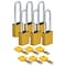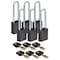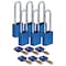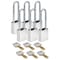 Lockout Padlock, Key Type Different, Body Material Aluminum, Shackle Dia. 1/4 in, Shackle Height 3 in, Shackle Material Steel, Shackle Width 13/16 in, Body Width 1 1/2 in, Body Thickness 3/4 in, Legend Danger Locked Out Do Not Remove, Standards OSHA 29 CFR 1910.147, Body Height 1 13/16 in, Body Finish Anodized, Body Color Red, Shackle Type Open, Number of Bumpers 0, Control Key Registration Required No, Package Quantity 6