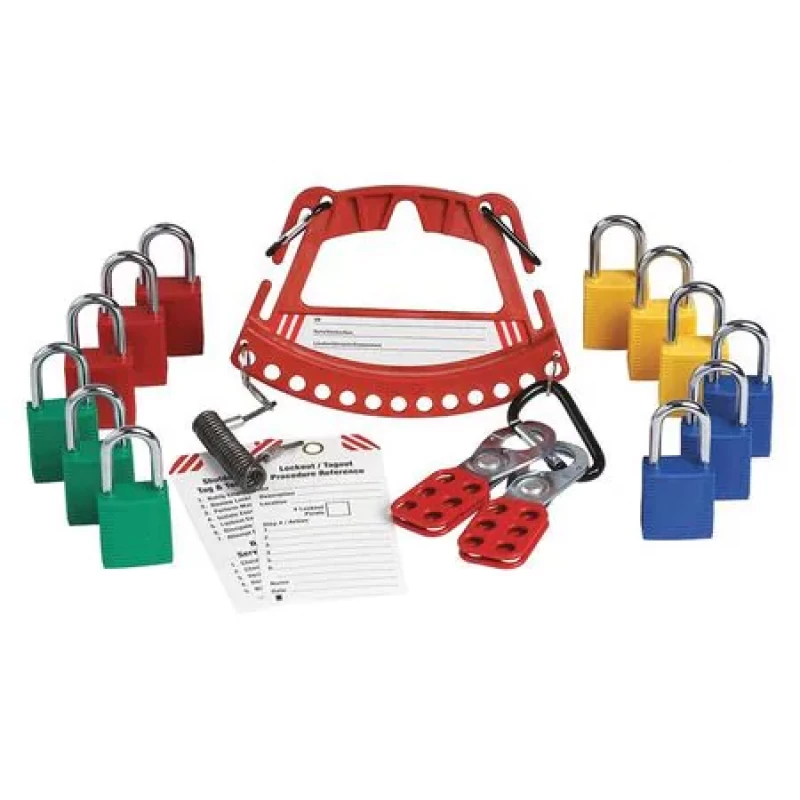 • Includes: (1) Carrier w/ 3 Clips and Key Holder, (2) Safety Hasps, (3) Blue Safety Locks (KA4), (3) Green Safety Locks (KA3), (3) LO Procedure Template Tags, (3) Red Safety Locks (KA1), (3) Yellow Safety Locks (KA2)