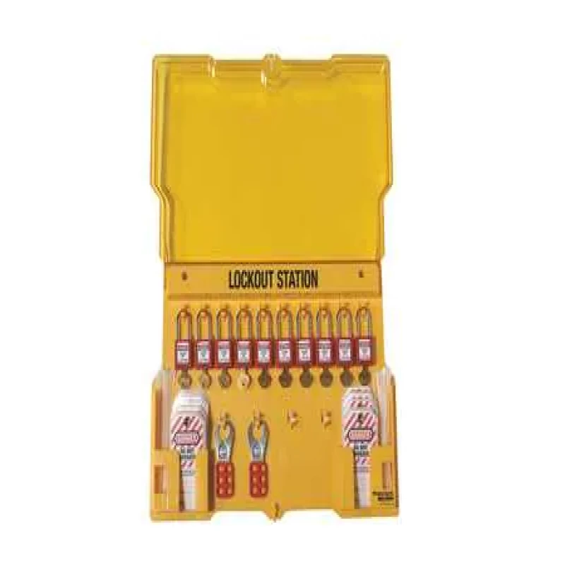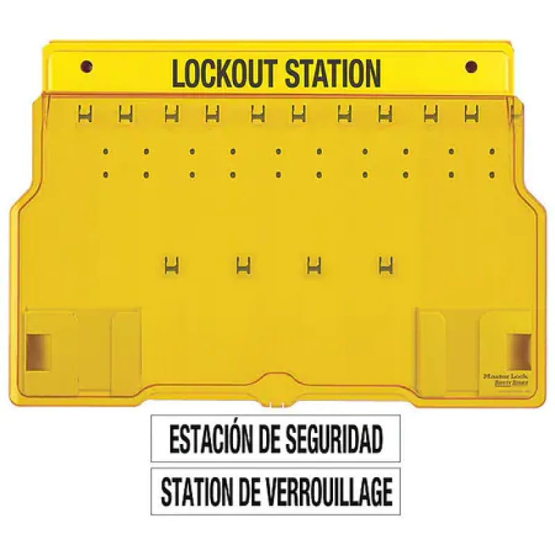 Lockout Station, Unfilled, Number of Components 0, Number of Padlocks Included 0, Height 15 1/2 in, Width 22 in, Depth 1 3/4 in, Color Yellow, Material Polycarbonate, Max. Number of Padlocks 10, Wall Mounting Yes, Portable No