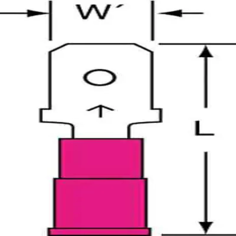 Male Disconnect, Insulation Partial, Insulation Type Vinyl, Insulation Color Red, Wire Range 22 to 18 AWG, Tab Size 0.032 in x 0.250 in, Barrel Inside Dia. 0.065 in, Max. Temp. 221 Degrees F, Max. Voltage 600 V, Overall Length 0.93 in, Seam Butted, Connection Material Tin-Plated Copper, Standards CSA Certified, RoHS Compliant, UL Listed, Connection Type Crimp, Package Quantity 1000