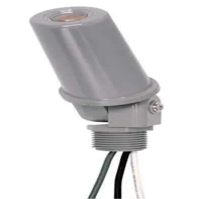 Photocontrol, Mounting Stem and Swivel, Voltage 120V AC, Max. Wattage 1,800, Max. Incandescent Amps 15.0, Max. Ballast Amps 8.3, 1.0 to 5.0 Foot Candles On, 3 to 15 Foot Candles Off, Color Gray, Temp. Range -40 Degrees to 158 Degrees F, Length 5 1/2 in, Width 1 1/2 in, Depth 1 1/2 in, Enclosure Type Raintight, Contact Form SPST, Housing Material Polycarbonate, Setting Dusk to Dawn, Standards CSA, Includes Locking Nut, Washer Gasket