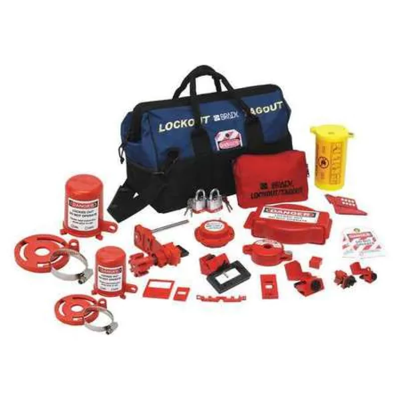 - Includes: (2) Silver Steel Padlocks, (1) Mini Cable Lockout, (1) Large Valve Lockout, (1) Snap-On Breaker Lockout, (1) Clamp-On 120/277V Breaker Lockout with Cleat, (1) Clamp-On 480/600V Breaker Lockout with Cleat, (1) Multiple Breaker Lockout, (1) Oversized Breaker Lockout, (1) Plug Lockout 3-in-1, (1) Wall Switch Lockout, (1) Adjustable 1-6-1/2 in Gate Valve Lockout, (1) Adjustable 1-2-1/2 in Gate Valve Lockout, (1) Adjustable 1/4-1 in Ball Valve Lockout, Belt Pouch, (2) Tags