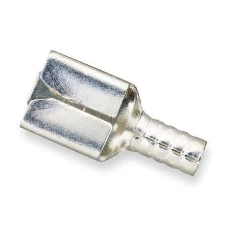 Female Disconnect, Insulation None, Insulation Type Bare, Insulation Color Bare, Wire Range 16 to 14 AWG, Tab Size 0.032 in x 0.250 in, Barrel Inside Dia. 0.08 in, Max. Temp. 347 Degrees F, Max. Voltage 600 V, Overall Length 0.66 in, Seam Butted, Connection Material Brass, Standards CSA Certified, RoHS Compliant, UL Listed, Connection Type Crimp, Package Quantity 100