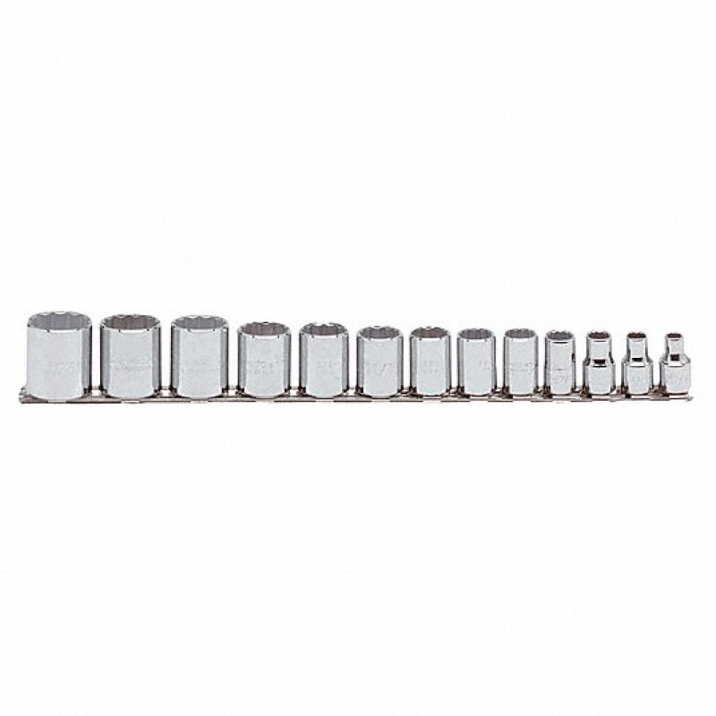 These SAE tether-ready socket sets allow the attachment of a tether where the tether is attached to the user or a fixed object to prevent the socket from falling and causing injuries or damage when working at height. Sets have an assortment of sockets that come in sizes that are measured in inches and fractions of an inch to fit fasteners with an SAE (inch) size head