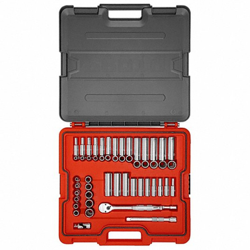 SAE and metric socket sets come with drive tools and an assortment of sockets for a range of fastener sizes. SAE sets come in sizes that are measured in inches and fractions of an inch to fit fasteners with an SAE (inch) size head. Metric sets come in sizes that are measured in millimeters to fit fasteners with a metric size head.