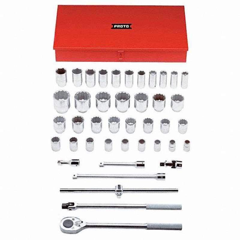 These SAE socket sets come with drive tools and an assortment of sockets for a range of fastener sizes. They come in sizes that are measured in inches and fractions of an inch to fit fasteners with an SAE (inch) size head.