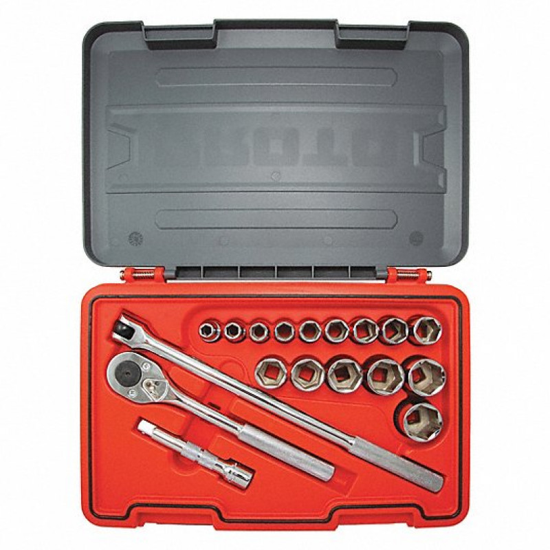 These SAE socket sets come with drive tools and an assortment of sockets for a range of fastener sizes. They come in sizes that are measured in inches and fractions of an inch to fit fasteners with an SAE (inch) size head