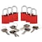 Lockout Padlock, Key Type Alike, Body Material Aluminum, Shackle Dia. 1/4 in, Shackle Height 1 in, Shackle Material Steel, Shackle Width 3/4 in, Body Width 1 1/4 in, Body Thickness 5/8 in, Includes (6) Padlocks, Standards OSHA 1910.147, Body Height 1 7/16 in, Body Color Blue, Shackle Type Open, Number of Bumpers 0, Control Key Registration Required No, Package Quantity 6