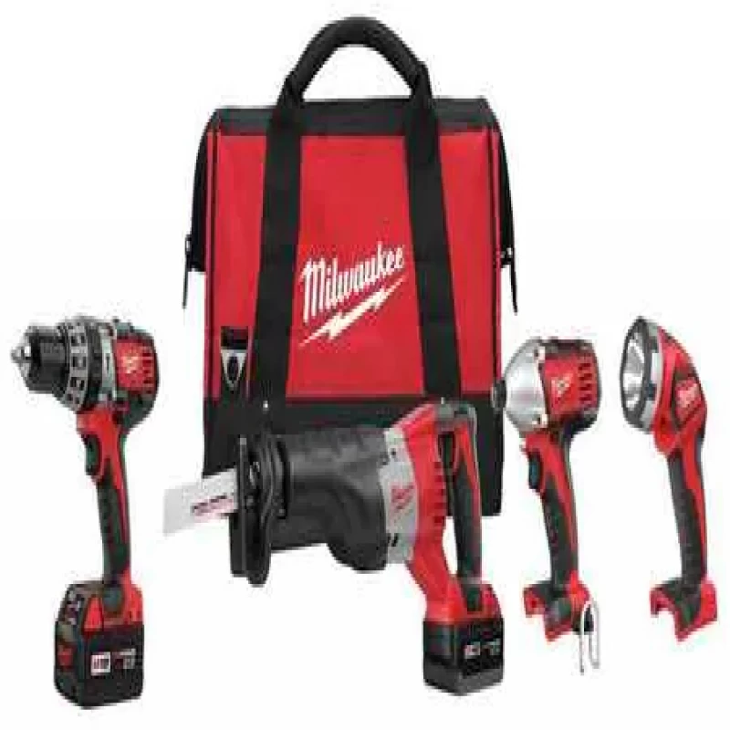 The 2696-24 M18™ Cordless 4-Tool Combo Kit includes the M18™ 1/2" Hammer Drill / Driver (2602-20), M18™ Sawzall® Recip Saw (2620-20), M18™ 1/4" Hex Impact Driver (2650-20), and M18™ Work Light (49-24-0171). The M18™ Cordless LITHIUM-ION System's patented technologies and electronics, innovative motor design, and superior ergonomics provide the most efficient blend of power, weight and performance in the industry. Powered by RED LITHIUM™ the M18™ cordless system delivers more torque, more power, and longer run-time than the competition.